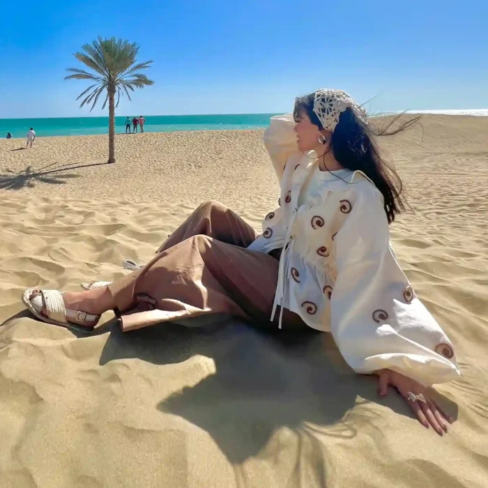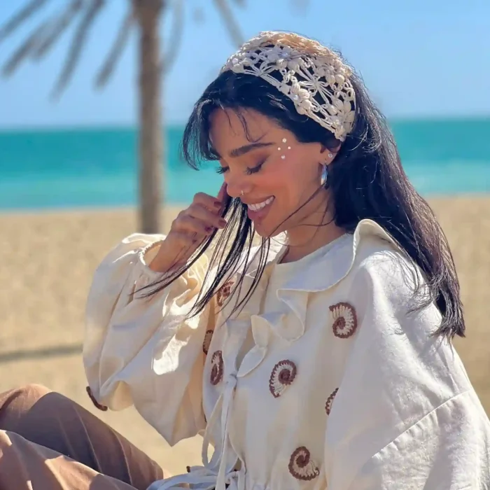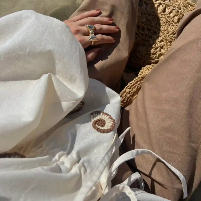 شومیز لینن با حلزون های دستبافت که یه وایب ساحلی و تابستونی داره